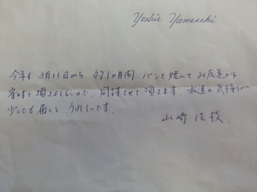 This is a letter sent with the support for Hope Japan. Even though we are in the pictures a lot, we are just a tip of iceberg of the big team. We will tell the people of Japan about you.